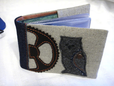 Шила я подушки с совами (текстильная аппликация), где можно ставила подвесочки-совы (металлическая фурнитура), теперь сшила блокноты и визитницы (аппликация из кожи, войлока и джинсы на льне).
